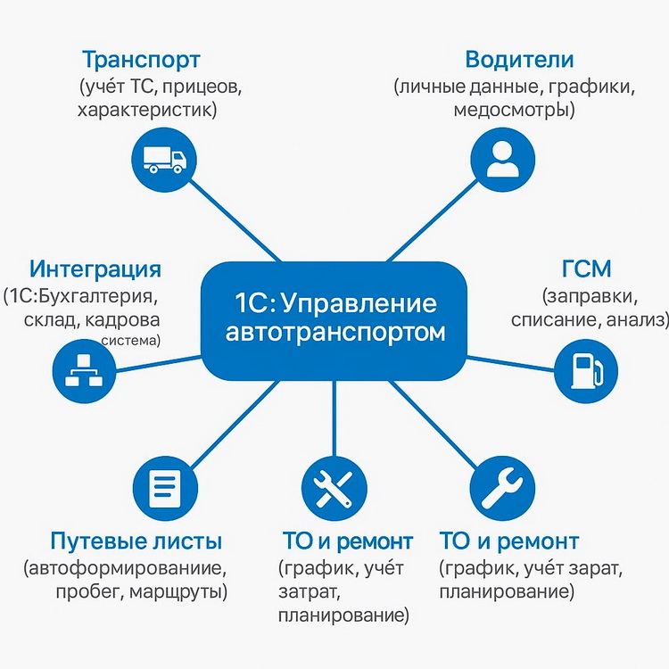 Центральным звеном цифровизации таксопарка часто становится специализированная конфигурация. Решение «Управление автотранспортом в 1С» — это комплексный продукт, предназначенный именно для этих целей. Его внедрение через «АйТи План» кардинально трансформирует работу диспетчерской, бухгалтерии и службы контроля, обеспечивая новый уровень управляемости. Ключевые функциональные возможности можно структурировать следующим образом: